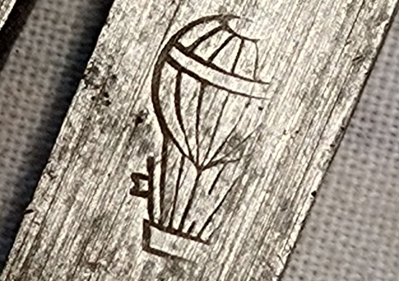 Der Zirkel (Kompass) ist mit einem Ballon gemarkt. Der Hersteller ist die Firma C. Ed. Rüggeberg, Remscheid, Gegründet 1874.