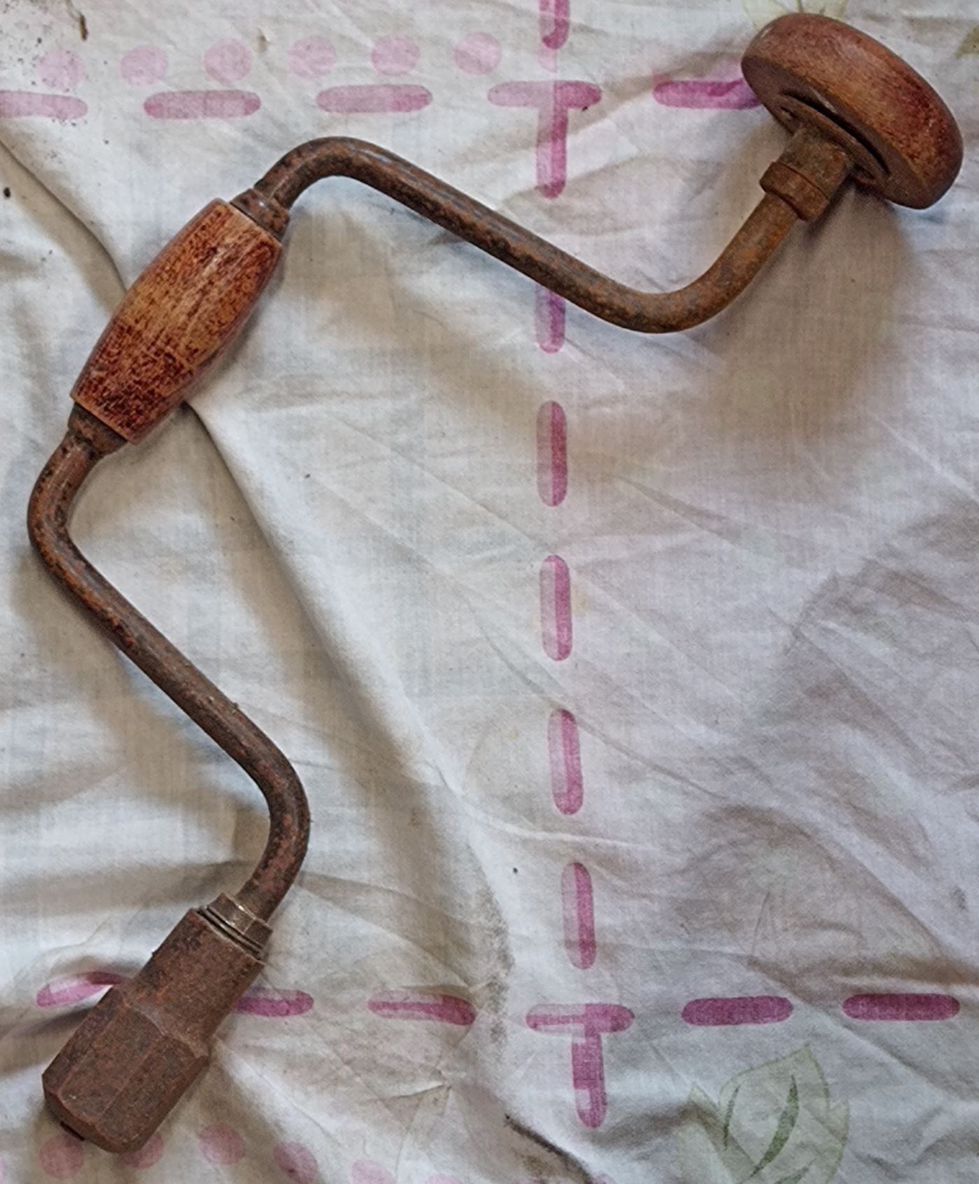 Der Bohrer lag in der Nähe, wurde von mir geputzt und passt auch gut dazu. Ich mag diesen alten Krempel.