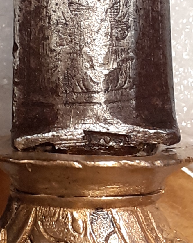 Als Herstellerzeichen ist die Krone eines Königskopfs ersichtlich, was in jener Zeit auf Peter Wundes (geb. ca. 1679, gest. 1755) in Solingen hindeutet.