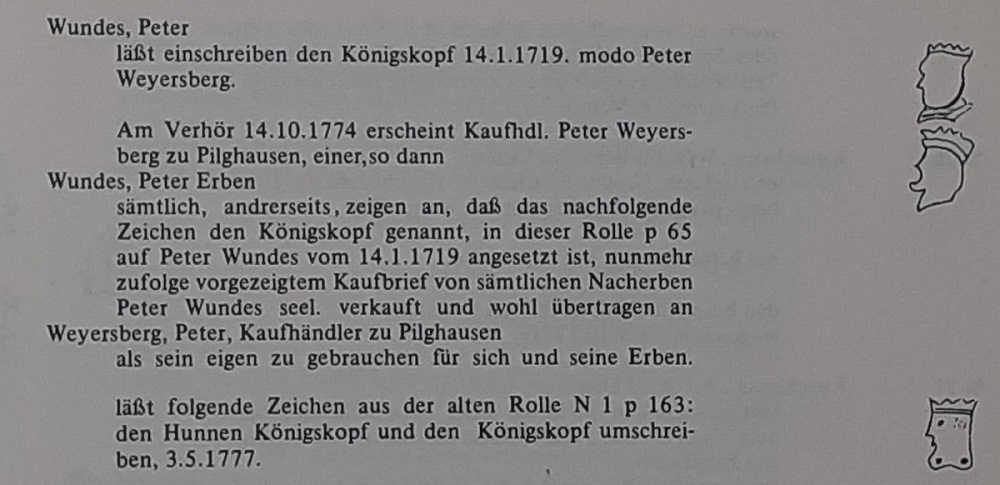 (Siehe hierzu den Ausschnitt aus Erika Schlesinger: Solinger Handwerkszeichen, die Zeichen der Messermacher-Rolle, Seite 281)