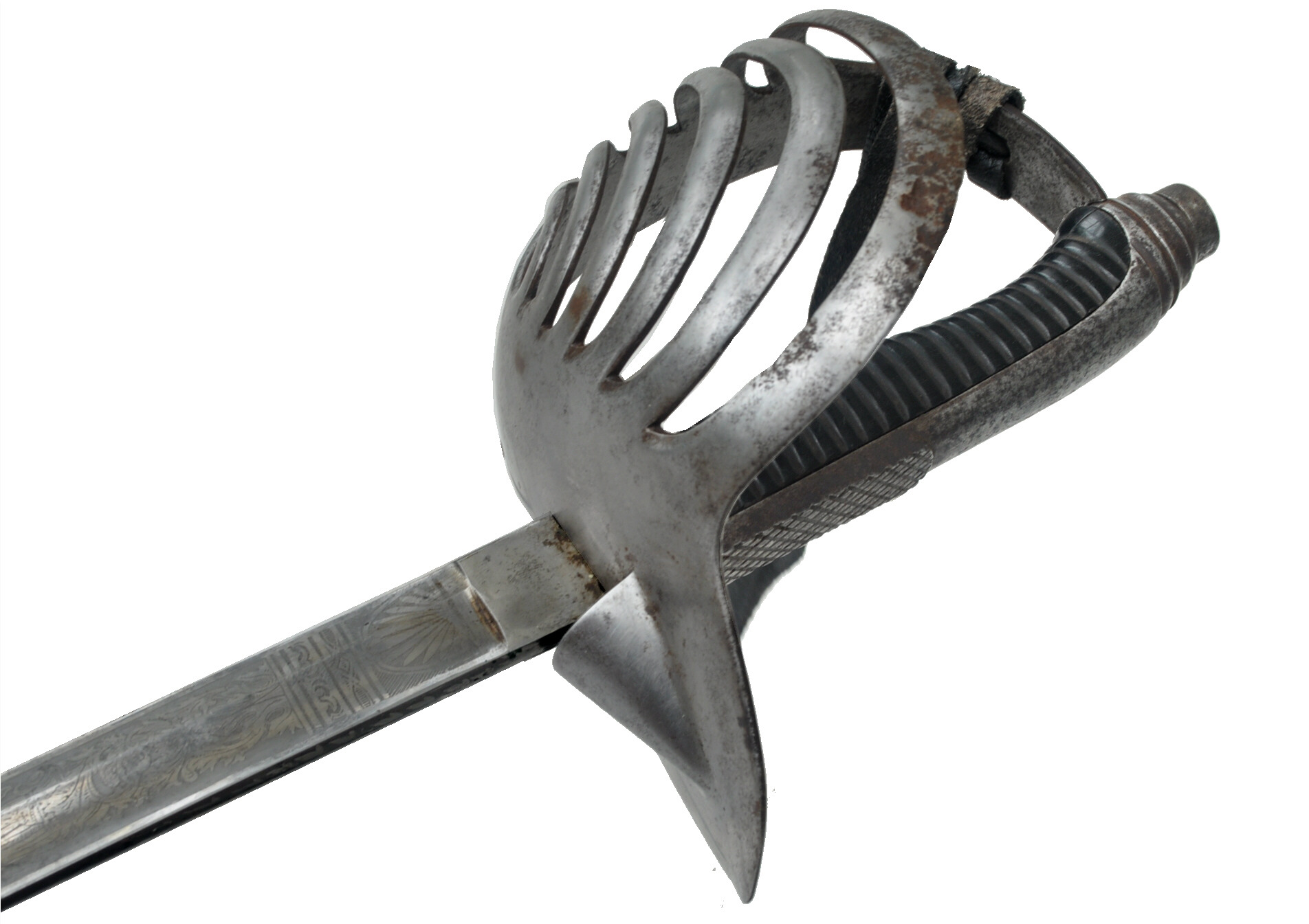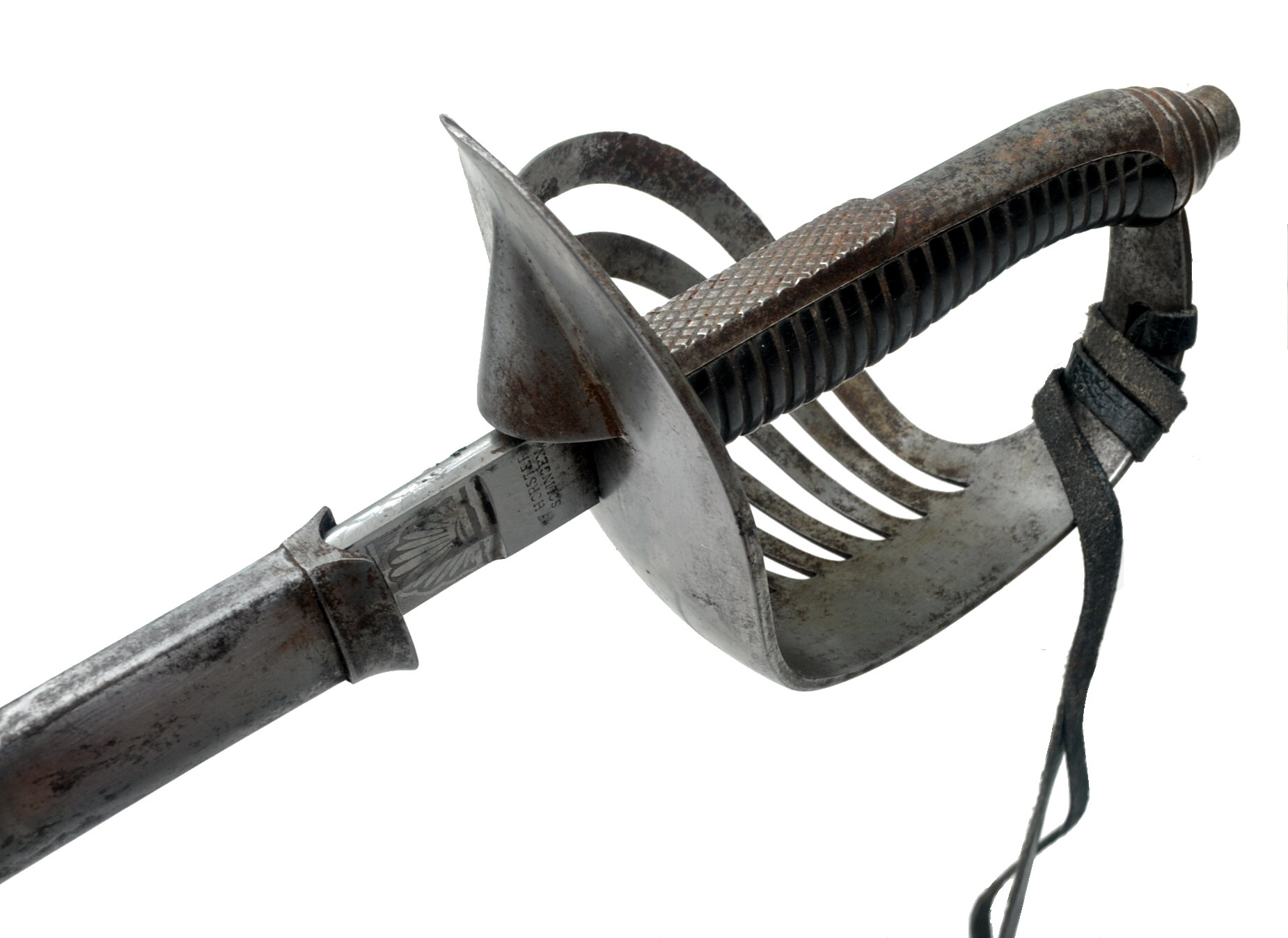 Leichter, mit Klingenätzungen versehener Offiziersäbel der Guiden. Die