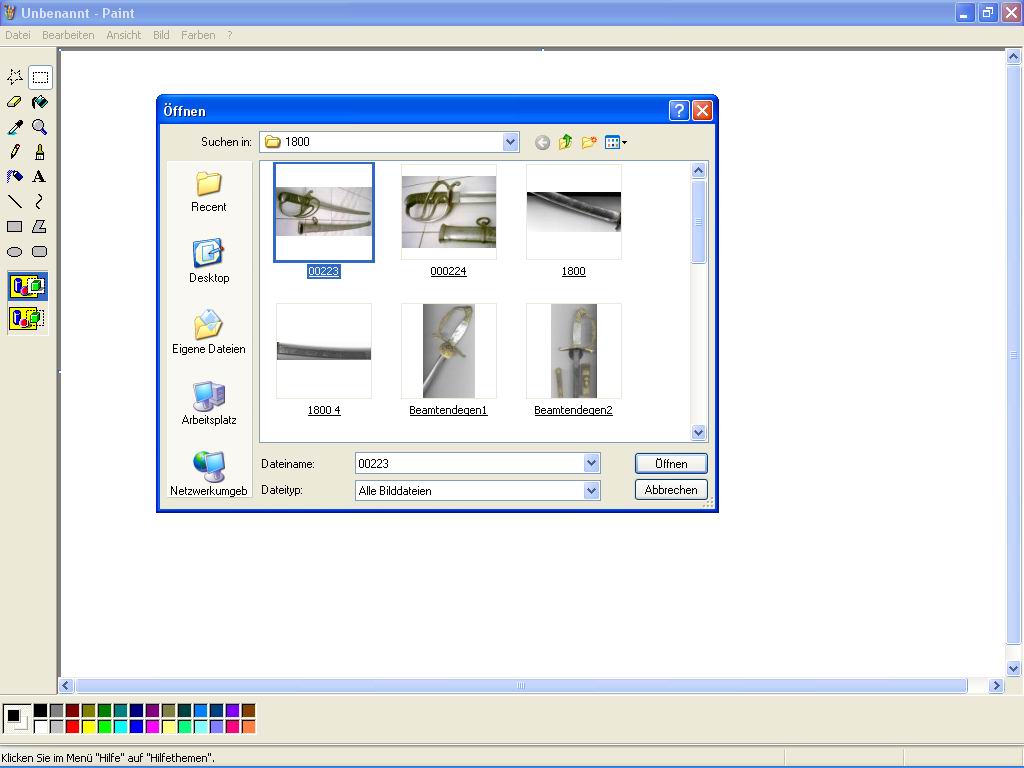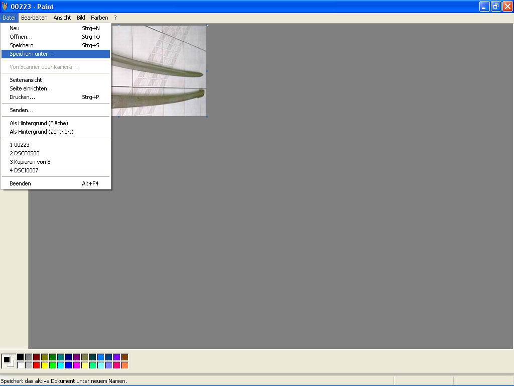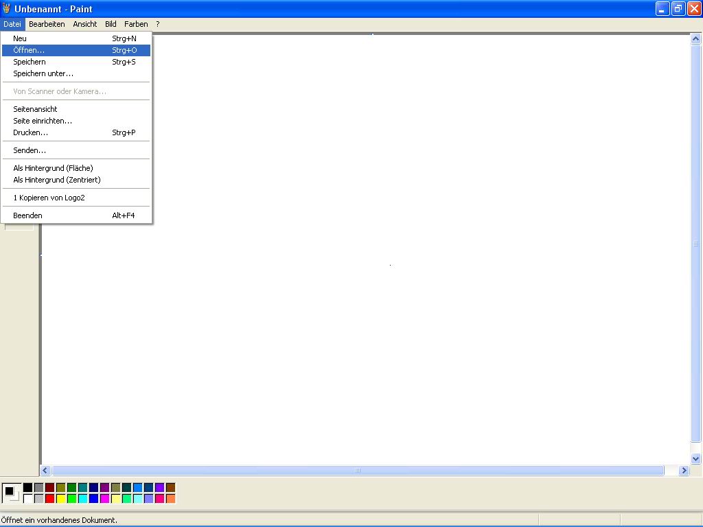 Schritt 2) Nachdem sich Paint geöffnet hat (siehe Bild_1) ladet Ihr das zu verändernde Bild hoch. Dazu geht man folgendermaßen vor, Datei -> Öffnen... (siehe Bild_2). Im dann erscheindenden Fenster sucht Ihr auf Eurer Festplatte das entsprechende Bild, markiert es (einmal anklicken) und klickt auf "öffnen" (siehe Bild_3). Das Bild erscheint nun im Programm Paint.