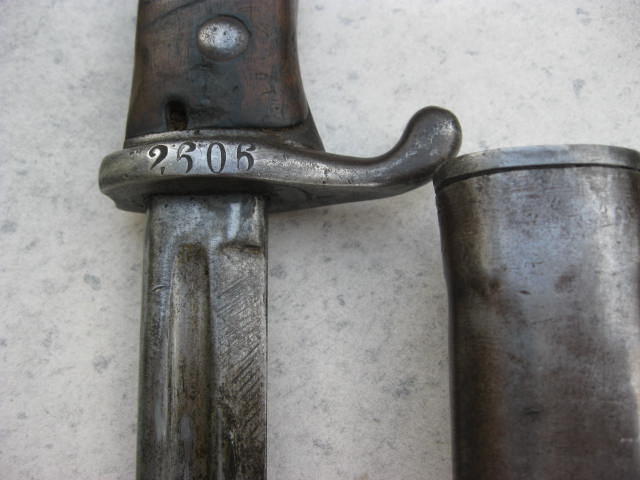 Ja dieses Stueck ist aber typisch fuer Turkei und wurde auch so nummeriert und wurde wohl auch benutzt so nach haelfte der 30igern, ich nehme an die scheide stammt von einem ASG88/98 und wurde gekuerzt von 31 cm auf 25cm. Ganz typisch die grosse nummerierung nach 1928.